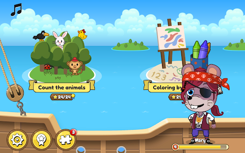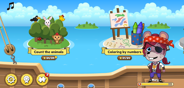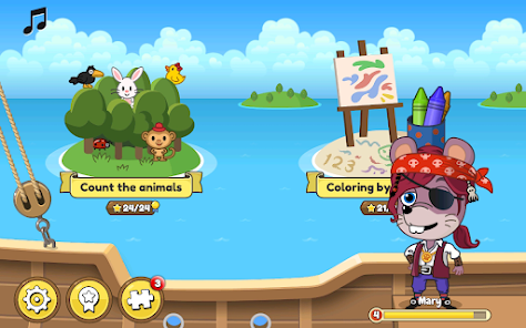 這個教育數學遊戲包含 K-3 年級的活動和謎題。玩家選擇一個角色,從一個島嶼到另一個島嶼,迎接挑戰,如數林中的動物、配對數字朋友、點對點繪製、數字著色、完成圖案和玩記憶配對遊戲。通過完成遊戲的各個階段來獲得星星併升級角色。還有獎牌和拼圖碎片可以收集作為對孩子的額外獎勵和鼓勵。