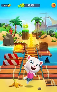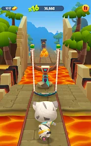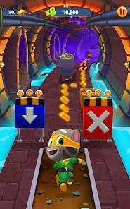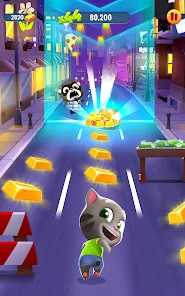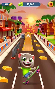 幫會說話的湯姆貓飛奔穿越色彩鮮明的世界、避開刺激的障礙物收集失竊的黃金。解鎖安吉拉、金傑貓、阿班狗、漢克狗和蓓卡兔以精美的服裝為他們自訂造型