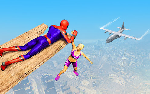 •Super Spider hero -man performs as police rope hero -man to rescue mission man game.