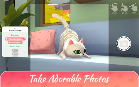 在此輕鬆愉快的貓咪收集遊戲中您可收集可愛的貓咪拍成好看的照片。您可依照自己喜愛的風格來裝飾公寓為貓咪打造完美舒適的家並且拍成照片分享到遊戲內的社交媒體網頁看著關注者的人數快速增加這是最適合用來放鬆的簡約風遊戲現在就來開辦自己的貓咪社團吧