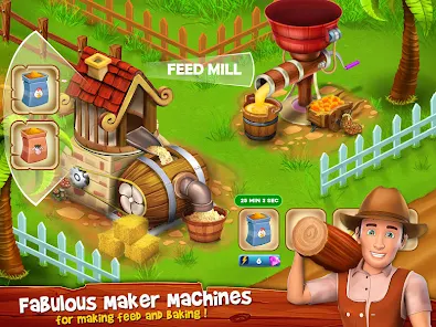 在農場遊戲中升級倉庫、加工廠、農田等。