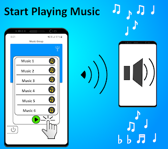 Now you can select a song displayed in the app and when you click on play it play's on all the connected phones simultaneously giving you a loud music.