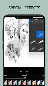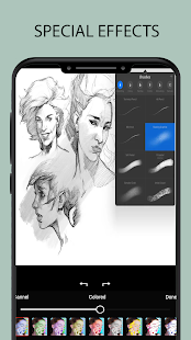 該應用程序利用雲備份,允許客戶在不同階段之間充分移動他們的工作。各種畫筆、屏幕和設施、雲字體和漫畫創作裝置的組合。