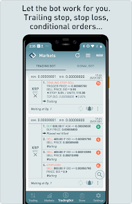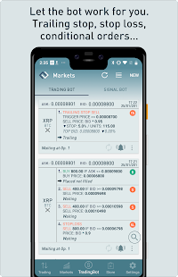 通過有條件訂單獲取利潤。配置市場,硬幣和買賣價格,並讓機器人為您下訂單,所以你只需要等待並獲得利潤。放置一個可選的止損裝置,以便能夠控制不利的市場條件。
