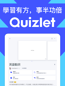 Quizlet是學習、練習和成為你所學項目的專家最輕鬆的方法。你可以建立單詞卡或從其他師生建立的五億多個學習集中找一些來學習。有了我們源自科學的學習工具組你可以牢記字彙、熟習課程中的關鍵概念、在考試之日來臨前練習考題。我們有一座寶庫可供你探索熱門科目的學習材料像是語言學習、醫學、法律、數學、社會科學等等。