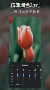 「參數調整」 進階影片調色支援亮度、對比、飽和度、銳利度、色溫、暗角、色調、陰影、高光、褪色