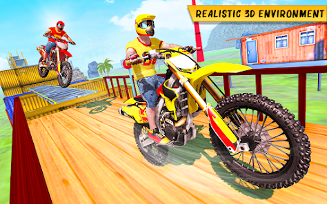 This bike stunt racing game will make you the pioneer of impossible stunts bike race game. Apply mega ramping tricks on crazy bike stunts to become champion. You have to maintain your stimulated moto bike balance to complete challenging missions. So ready to play an impossible ramp bike racing 3d game and drive on tricky master tracks. Choose your favorite color for your racing bike and collect coins by playing the moto bike racing stunt game. The colorful scenery of the motorcycle stunt game is full of fun and excitement. Different camera angles bike stunt 3d according to your choice in motorcycle jump game.