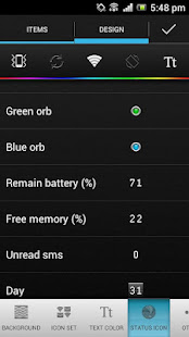 每個快捷欄,狀態欄上的圖標。您可以自定義快捷欄設計設置。