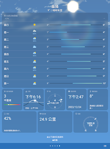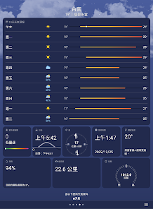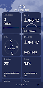 它有有關紫外線指數、日出、日落、風力、當地時間、風寒、濕度、能見度和壓力的信息。