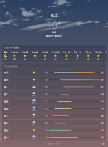 這款免費應用程式提供當前的天氣預報,以及未來一小時、數小時和未來十天的天氣預報。