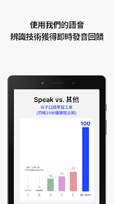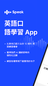 Speak 總部位於美國舊金山是一款由國際專業教學團隊設計的英文學習 App。透過影音課程、反覆練習慣用詞及單字、AI 實境對話等步驟化學習跟著我們設計的學習路徑真正有意識練習英文口說。