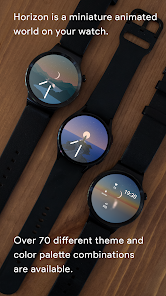 Horizon 是您智能手錶上的一個微型動畫世界,一天中的每一秒都有其獨特的表現形式。提供超過 70 種不同的主題和調色板組合。