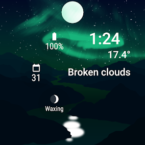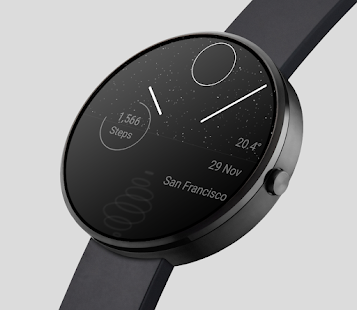 根據位置準確顯示日落和日出。太陽的視覺表示恰好在日出時升起。太陽將繼續升起,直到太陽正午,當它到達錶盤上的最高點時。隨著時間的推移,太陽接近地平線,並在日落時分消失。一旦視覺表現落入夜晚,隨著天空逐漸變暗,月亮將與星星一起升起。