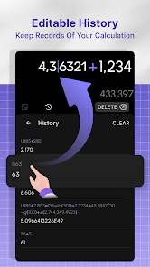 →我們提供可編輯的歷史記錄功能,用於查看、插入或刪除以前的計算。