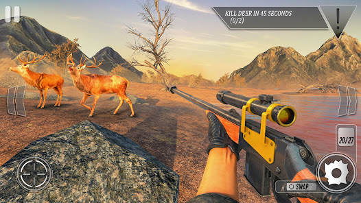 獵鹿人遊戲,現代動物狩獵和叢林狩獵射手掌握技能,可以完美射擊,成為動物狩獵遊戲中的終極獵鹿英雄。叢林環境充滿了狩獵野鹿森林動物的動物,您必須在這裡狩獵野生動物和鹿才能完成作為動物獵人,鹿獵人大師的所有級別。設置瞄準並射擊狩獵動物遊戲野生叢林鹿,成為最好的瘋狂獵人和叢林射擊遊戲的現代狩獵世界。尋找野鹿,作為一個真正的野生叢林獵人設定目標並在它們移動之前立即獵殺牠們。您可以根據自己選擇的叢林狩獵鹿遊戲和性能森林 fps 射手有效的鹿狩獵野生動物園挑戰,在新的狩獵天堂中選擇最強大的叢林鹿射擊槍。體驗 2022 年最具冒險精神的非洲獵鹿遊戲,驚險刺激的野生獵鹿射擊遊戲。野生叢林鹿狩獵為您提供動物狩獵挑戰,以在 Safari 射手 3d 中射擊和狩獵瘋狂野鹿和動物的範例。 Sharp Jungle Shooter 是一款令人上癮的動物射擊狂野動作包極端野生動物獵人,帶您在最逼真的叢林環境中進行動物狩獵終極狩獵冒險,包括動物狩獵、草地等等。當心攻擊 2021 年狩獵遊戲中被捕食的動物!通過逐步通過野鹿射擊模擬器關卡和 2021 年動物射擊遊戲,探索逼真的動物叢林和高度詳細的沉浸式 3D 叢林主題。