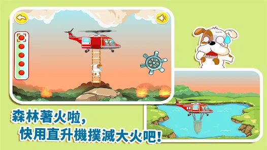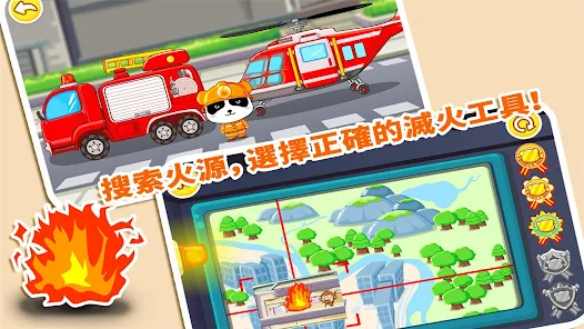 孩子需要根據著火地點選擇正確的滅火設備參與到滅火救援行動中通過點擊、滑動等操作來撲滅大火拯救危機的小動物們。
