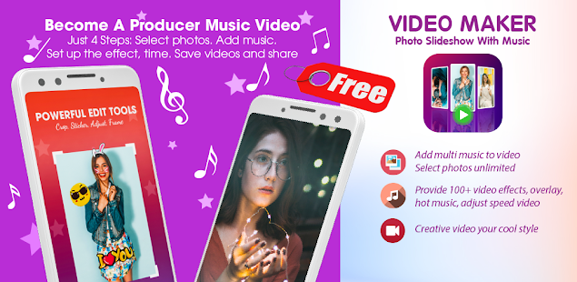 您可以製作帶有音樂的視頻,創建電影,編輯視頻,合併照片以使用庫和圖片中的音頻創建幻燈片。該應用程序允許用戶從手機中選擇您喜歡的照片,音樂。添加幾個簡單的步驟,您已經擁有了自己編輯的音樂視頻產品。