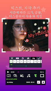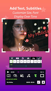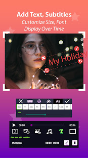 ✅ 在視頻上創建帶有字幕的視頻非常簡單,將文本插入片段中,創建歌曲歌詞,前奏和結尾文本。應用程序可幫助您自定義文本字體,文本大小並選擇在剪輯上顯示文本的時間範圍。