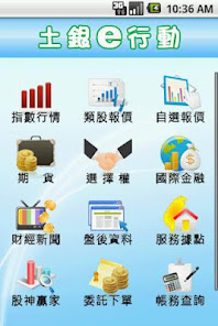 《土銀e行動》為土地銀行委託三竹資訊所開發之股市看盤下單軟體,提供國內上市、上櫃、興櫃商品、各類指數、期貨、外匯及國際金融行情報價,另外還有豐富的盤後資訊、財經新聞。