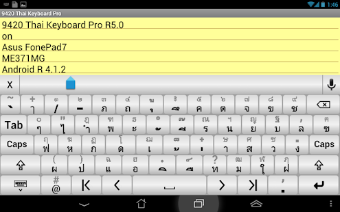 9420 Thai Keyboard for Android is a free Thai/English keyboard software (with built-in "Full" Thai/English word database) that designs for using "finger" and optimizes for text-hungry apps like LINE, Twitter, FaceBook.