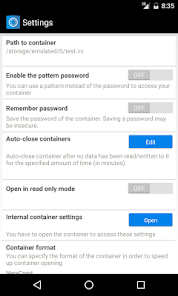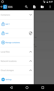EDS(加密數據存儲)是Android虛擬磁盤加密軟件,它允許您將文件存儲在加密容器。 VeraCrypt(R),TrueCrypt的(R),LUKS,EncFs容器類型的支持。