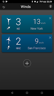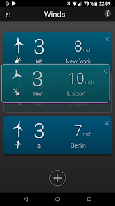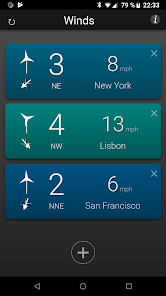 This application shows the current outdoor wind speed and direction for different locations, measured by a nearby weather station.