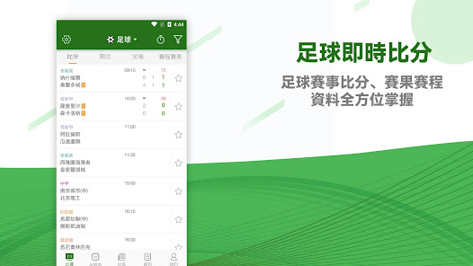 第一時間獲取比賽陣容、實時比分、傷病和停賽、進球、黃牌和紅牌等賽場信息。