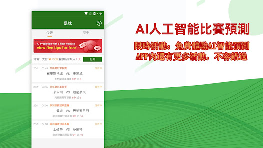 活動一:所有用戶可免費查看2場足球賽事AI預測,為您節省10美元;