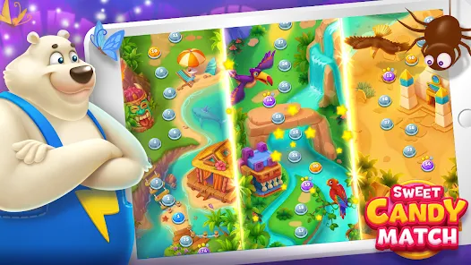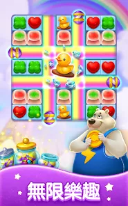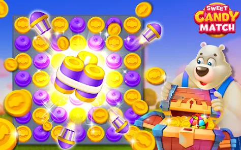Sweet Candy Match 是一款全新時尚的甜蜜糖果粉碎三消益智遊戲適用於所有年齡段的成人或兒童。 陪伴可愛的小熊快速通關無限升級