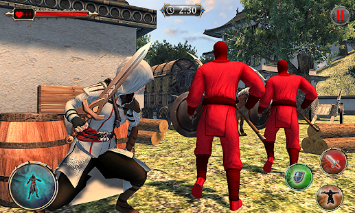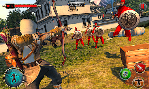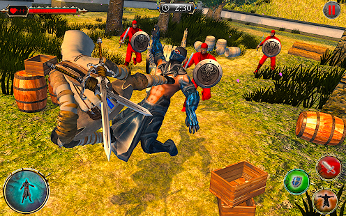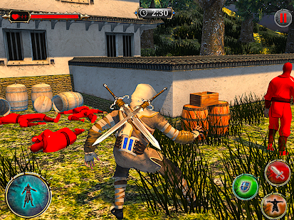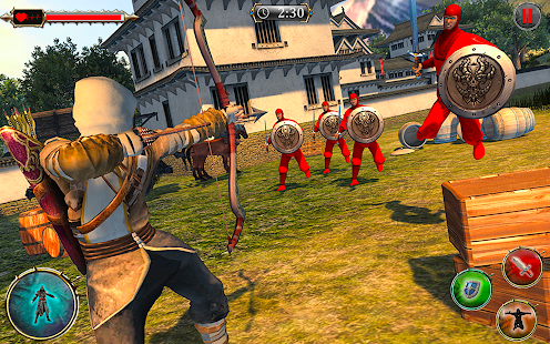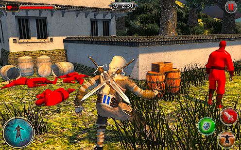 You will have to fight out your enemies with your superhero, kick, punch, slash through them like a ninja hero or just climb away to disappear from the enemy area. Don't get hit and take risk if you know how to move in odyssey. Be a ninja man and stand against traitor, kill all the enemies and take revenge his army who murdered your king with disloyalty. Use iron and gold action ninja swords, axes, hammers or bone bow to clear your way and vanish these traitors. You can buy them in the shop for gold you can find behind secret missions enter. With super equipment your super ninja hero can reach almost immortality. Sneak and wait for good opportunity to hit in right moment finish all the enemies as rooftop assassin. Equip yourself as ninja fighter, take your assassin ninja sword, bow, arrows and sharpen spinner shuriken for long range target and fight like real ninja superhero warrior in this Superhero ninja assassin odyssey battle 2019. So ready for the real thrilling ninja fighting experience in this epic war game and ready to face different fighting missions of this Superhero ninja assassin odyssey game.
