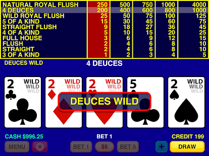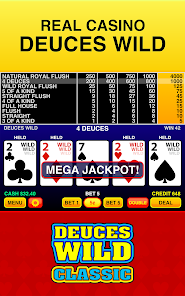 Deuces Wild Classic features the most authentic Deuces Wild video poker with real card shuffling, casino paytable, real dealing, skills trainer, and the full Las Vegas experience.