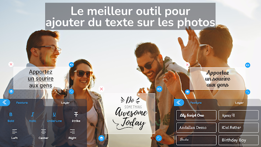 ✔ Write on photos with various text effects, fonts & sample quotes