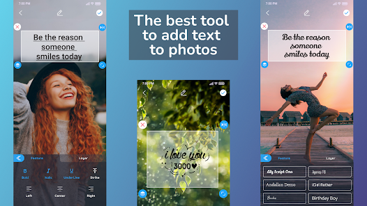 The photo text editor is a mobile application that allows you to add text to photos. You can easily add your favorite quotes to any photo. Write on photos with #1 photo text editor! 📸