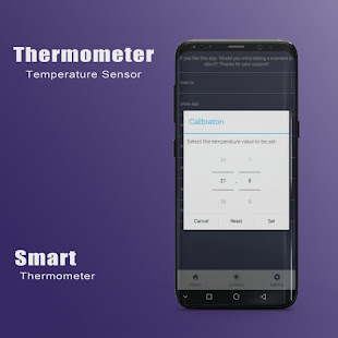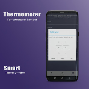 Temperature unit type °C or °F can be switched from the menu or by touching the unit sign. Our digital thermometer app uses built-in sensors to get current ambient temperature in your room in Celsius and Fahrenheit degrees. Application works fast and accurate so you can rely on its measurements. Sometimes there is a need for calibration, so please leave your phone on a flat place, without touching it. Calibration will complete and you will see actual temperature in your room. Tool shows temp in Celsius and Fahrenheit degrees.