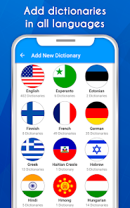 - 超過700字典:我們廣泛收集數據庫超過700個在超過60種語言。它包括各種辭書。定義和端莊,同義詞和反義詞,同義詞,首字母縮寫詞,計算機術語,短語和表達典型的...當然語言的詞典,如英文詞典西班牙語,法語英語詞典等等。