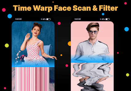 現在通過這個時間扭曲面部掃描和過濾器應用程序製作有趣、獨特和時尚的時間扭曲照片和視頻。在社交網絡上分享,與朋友和同事一起玩樂。