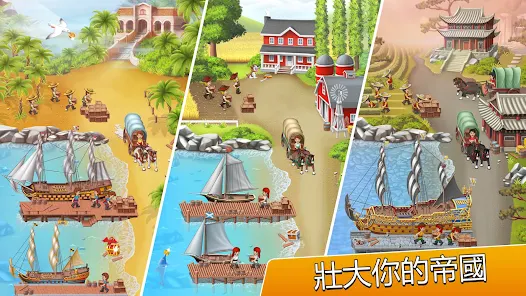 壯大你的帝國收穫貿易商品派遣船隻去探險奪取裝滿黃金或寶物的寶箱。
