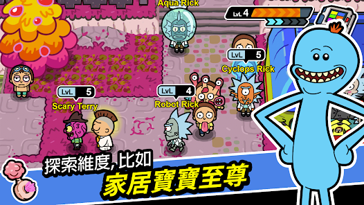 跟隨瑞克穿越多重宇宙迎接最新潮流莫蒂訓練有超過 70 種奇特的莫蒂等著你招募和訓練包括小鬍子莫蒂、巫師莫蒂、柯能堡莫蒂以及更多其他莫蒂。打造一支夢幻隊伍然後逼迫你的孫子跟彼此戰鬥好挑戰其他敵對的瑞克。指揮、結合和升級你的莫蒂證明你是所有時空中最偉大的莫蒂訓練師