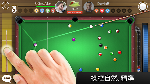 遊戲雲集來自世界各地的美式八球高手。你將可以參與高風險球桌贏走大筆獎金從而累積豐富的現金成為本遊戲最有錢的撞球王