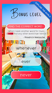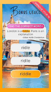 當您參觀城市和地標時,可以環遊世界。解決有趣的單詞搜索難題並完成填字遊戲。訓練你的大腦以找到隱藏的單詞和含義。查找您以前從未聽過的單詞並擴展您的詞彙量。這個單詞益智遊戲有數千個單詞供您學習。具有離線遊戲功能的新遊戲。