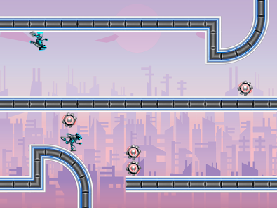 以閃電般的速度奔跑和翻轉重力,穿越扭曲的水平,這將挑戰您的計時和反射能力。
