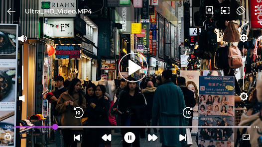 使用高清視頻播放機播放所有視頻格式,並通過高級設置以慢動作和快動作享受全高清視頻播放。您可以輕鬆地將視頻播放速度從0.5更改為2.5。您可以輕鬆放大和縮小正在播放的內容。Mp4播放機 - 媒體播放機支援25%-500%縮放。