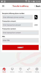 - Transfer to your family and anyone anywhere, anytime via eMoney account or Non-eMoney account users