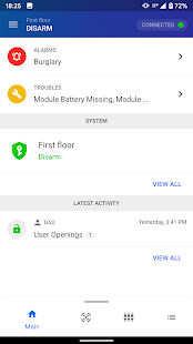 - Configure and receive push notifications from the alarm system