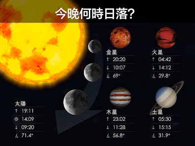 該應用程序通過使用您設備內的傳感器與全球定位系統來確定夜空中恆星、行星、星座、彗星、國際空間站、衛星、星團、星雲以及流星雨的準確位置。