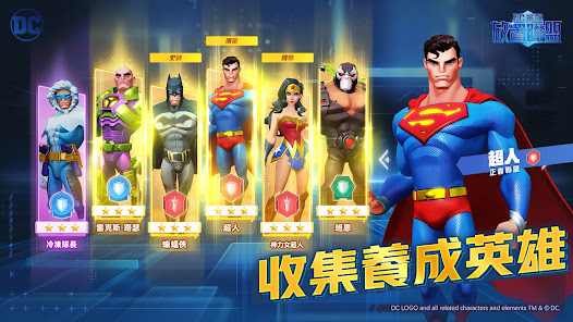 犯罪集團成員入侵地球快來與DC中一些最強大的角色並肩作戰蝙蝠俠、超人、神力女超人等DC經典超級英雄和超級反派任你指揮收集並升級你的超級英雄和超級反派在戰鬥中以策略取勝用令人驚嘆的英雄終極技能懲罰並擊敗犯罪集團恢復地球上的和平與秩序