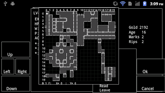 ・オートマッピングは、店に売っている「地図の巻物」を使うか、魔法使いが習得する「Mapper」の魔法で見ることができます。