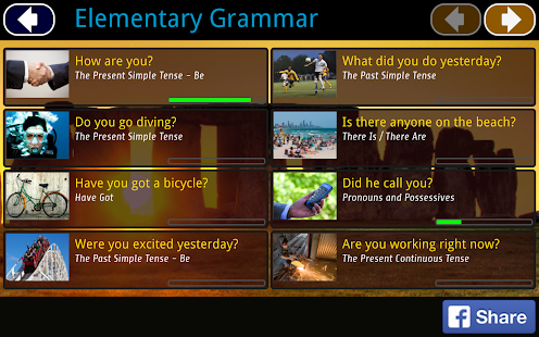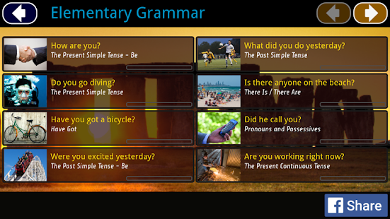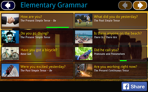 用我們令人興奮的學習方法快速學習英語文法!玩遊戲並學習,同時提高您的詞彙,聽力和口說技巧。