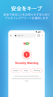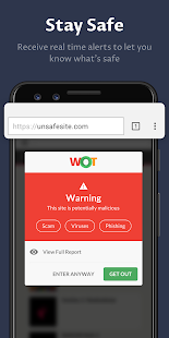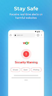 使用 WOT 可以輕鬆地通過手機保持在線安全。享受終極設備安全,其內置功能可保護您免受網絡釣魚、惡意軟件、有害 WiFi 網絡和其他數字威脅的侵害。確保您的密碼安全並保護您的設備。