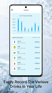 DripDropDuo 也為您產生對應的飲酒記錄長條圖。透過這張圖表您可以清楚地看到您每天的飲水情況不僅可以幫助您及時發現飲水不足的問題還可以激勵您保持更健康的飲水習慣。